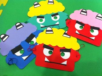 豆まきは、お子さんたちに日本の年中行事を体験してもらおう!という趣旨で実施しました。楽しそうに鬼に豆を投げるお友だち、またまた鬼を見て怖がって泣いてしまったお友だちもいました。豆の代わりに紙を丸めたものを使いましたが、帰るときまでずっとその豆をぎゅっと大事そうに握りしめているお子さんを見て、鬼(スタッフ)もとても嬉しい気分になりました。